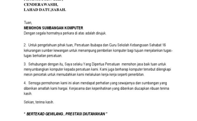 Surat Mohon Sumbangan Kewangan Untuk Lawatan - Contoh Surat Mohon Sumbangan Pdfcoffee Com. Yang berhormat dato' sri haji mohammad najib bin tun haji abdul razak (jawi: Karim kewangan 5.1 sumber kewangan menggunakan vot 52000, vot 29000 … Nasir en mohd khairi b.